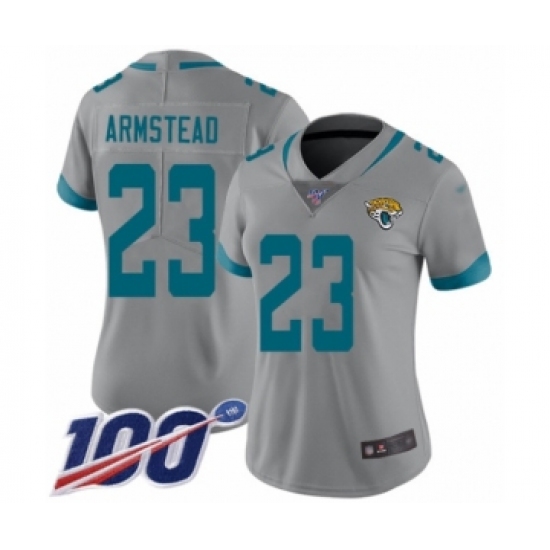 >Women's Jacksonville Jaguars #23 Ryquell Armstead Silver Inverted Legend Limited 100th Season Football Jersey
