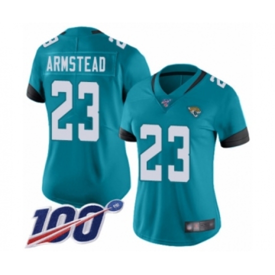 >Women's Jacksonville Jaguars #23 Ryquell Armstead Teal Green Alternate Vapor Untouchable Limited Player 100th Season Football Jersey