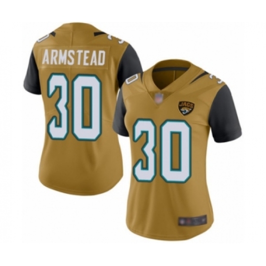 >Women's Jacksonville Jaguars #30 Ryquell Armstead Limited Gold Rush Vapor Untouchable Football Jersey