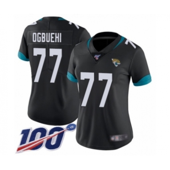 >Women's Jacksonville Jaguars #77 Cedric Ogbuehi Black Team Color Vapor Untouchable Limited Player 100th Season Football Jersey