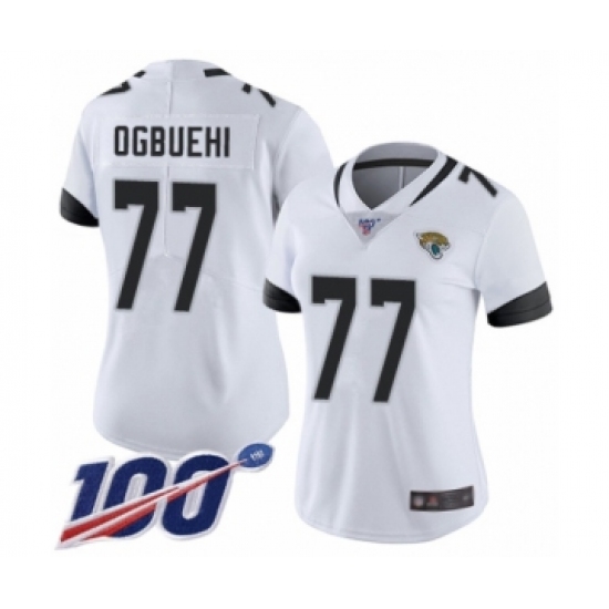 >Women's Jacksonville Jaguars #77 Cedric Ogbuehi White Vapor Untouchable Limited Player 100th Season Football Jersey
