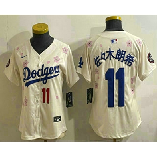 Women's Los Angeles Dodgers #11 Roki Sasaki Cream Japanese 2025 Tokyo Series Limited Jersey