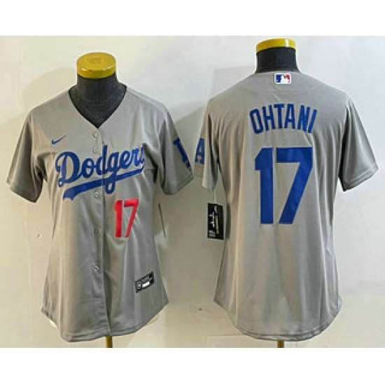 Women's Los Angeles Dodgers #17 Shohei Ohtani Number Grey Cool Base Stitched Jersey