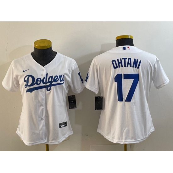 >Women's Los Angeles Dodgers #17 Shohei Ohtani White Stitched Cool Base Nike Jersey