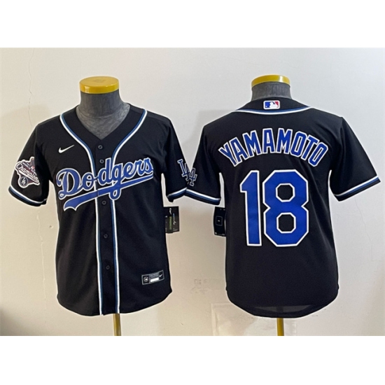 Men's Los Angeles Dodgers #18 Yoshinobu Yamamoto Black Cool Base Stitched Jersey