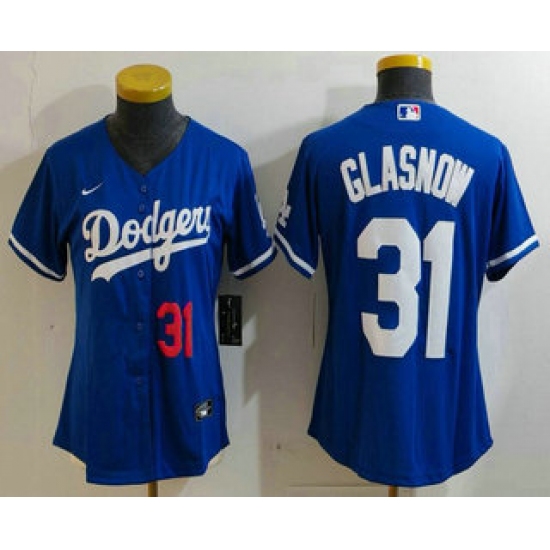 Women's Los Angeles Dodgers #31 Tyler Glasnow Number Blue Stitched Cool Base Nike Jersey