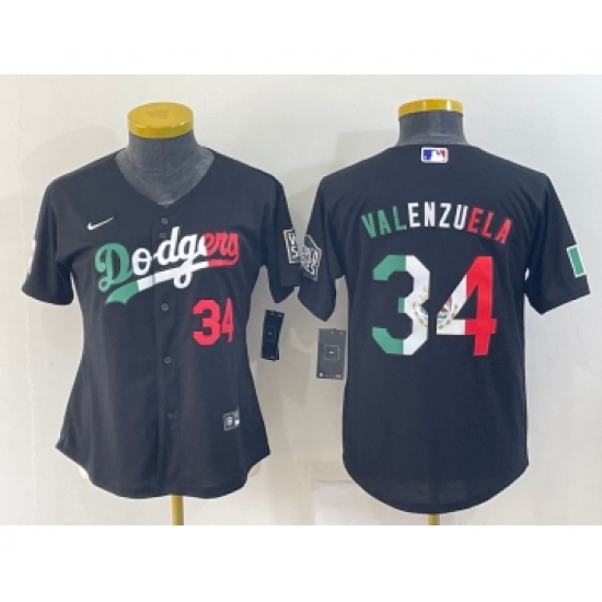 Women's Los Angeles Dodgers #34 Toro Valenzuela Mexico Number Black Cool Base Stitched Baseball Jersey