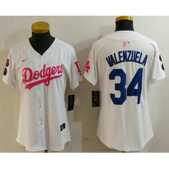 Women's Los Angeles Dodgers #34 Toro Valenzuela White Pink With Limited Stitched Jersey