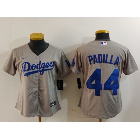 >Women's Los Angeles Dodgers #44 Vicente Padilla Grey Cool Base Stitched Jersey