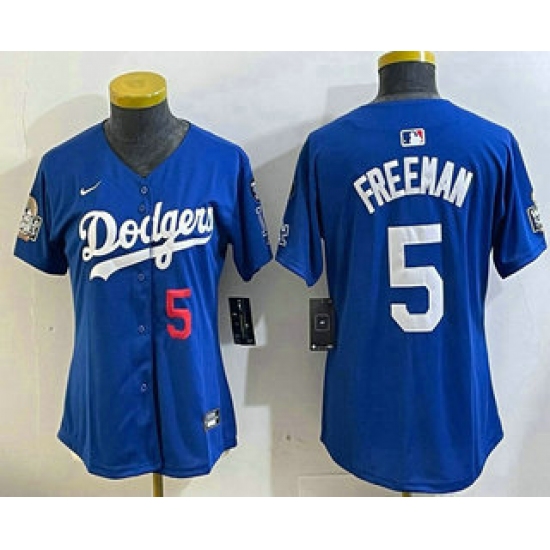 Women's Los Angeles Dodgers #5 Freddie Freeman Number Blue 2024 World Series With Fernando 34 Limited Stitched Jerseys