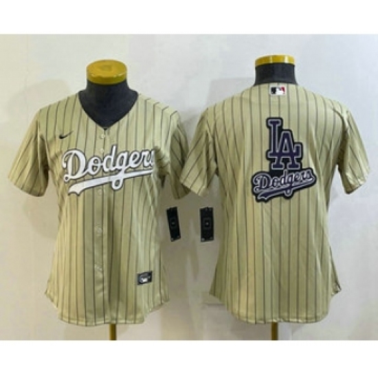 >Women's Los Angeles Dodgers Big Logo Number Cream Pinstripe Stitched MLB Cool Base Nike Jerseys
