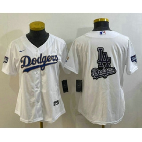 Women's Los Angeles Dodgers Big Logo White Gold Championship Stitched MLB Cool Base Nike Jerseys
