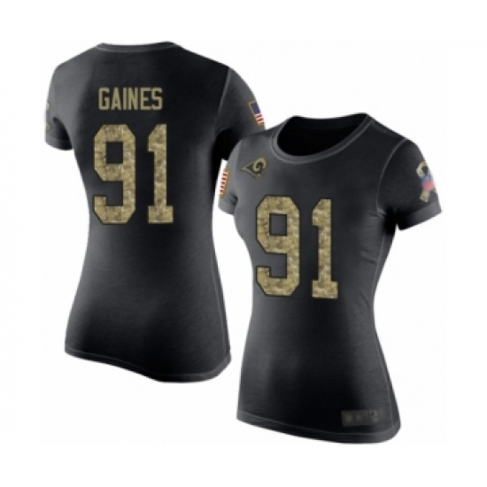 Women's Los Angeles Rams #91 Greg Gaines Black Camo Salute to Service T-Shirt