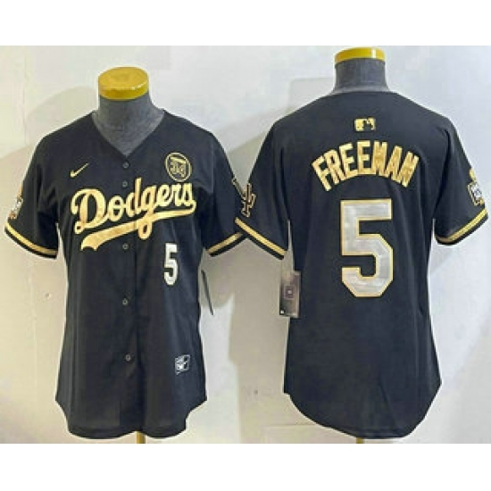 >Women's Los Men's Los Angeles Dodgers #5 Freddie Freeman Black Gold 2024 World Series 34 Stitched Cool Base Jerseys