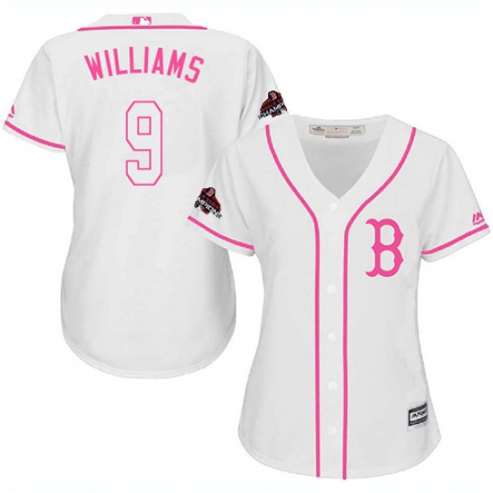 Women's Majestic Boston Red Sox #9 Ted Williams Authentic White Fashion 2018 World Series Champions MLB Jersey