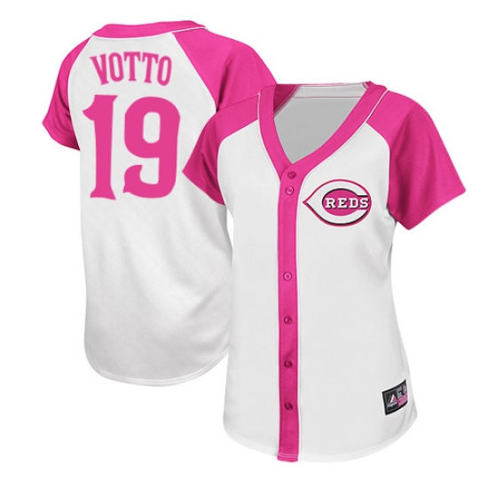 Home>MLB>Cincinnati Reds>Joey Votto>Women's Majestic Cincinnati Reds #19 Joey Votto Replica White/Pink Splash Fashion MLB Jersey