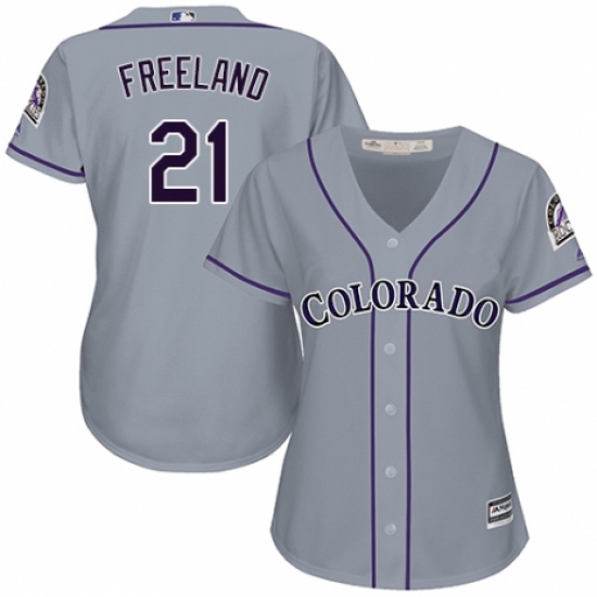 Women's Majestic Colorado Rockies #21 Kyle Freeland Authentic Grey Road Cool Base MLB Jersey