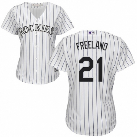 Women's Majestic Colorado Rockies #21 Kyle Freeland Replica White Fashion Cool Base MLB Jersey