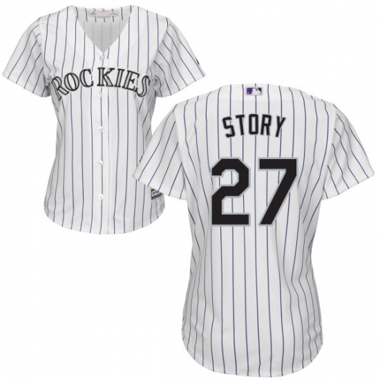 Home>MLB>Colorado Rockies>Trevor Story>Women's Majestic Colorado Rockies #27 Trevor Story Authentic White Home Cool Base MLB Jersey
