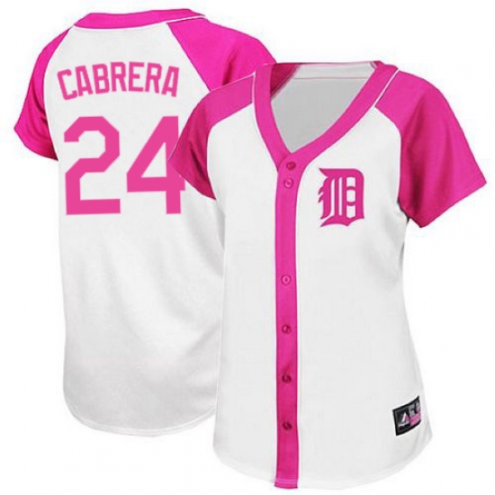Home>MLB>Detroit Tigers>Miguel Cabrera>Women's Majestic Detroit Tigers #24 Miguel Cabrera Replica White/Pink Splash Fashion MLB Jersey