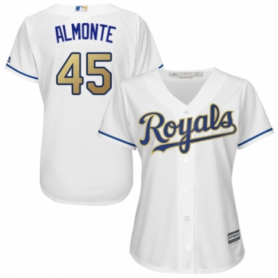 Women's Majestic Kansas City Royals #45 Abraham Almonte Authentic White Home Cool Base MLB Jersey