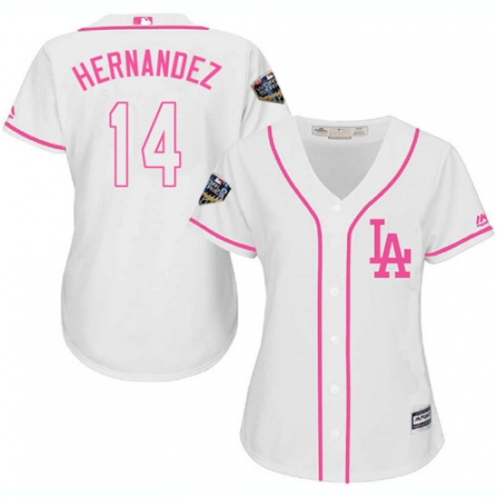 >Women's Majestic Los Angeles Dodgers #14 Enrique Hernandez Authentic White Fashion Cool Base 2018 World Series MLB Jersey