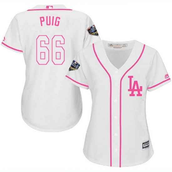 Women's Majestic Los Angeles Dodgers #66 Yasiel Puig Authentic White Fashion Cool Base 2018 World Series MLB Jersey