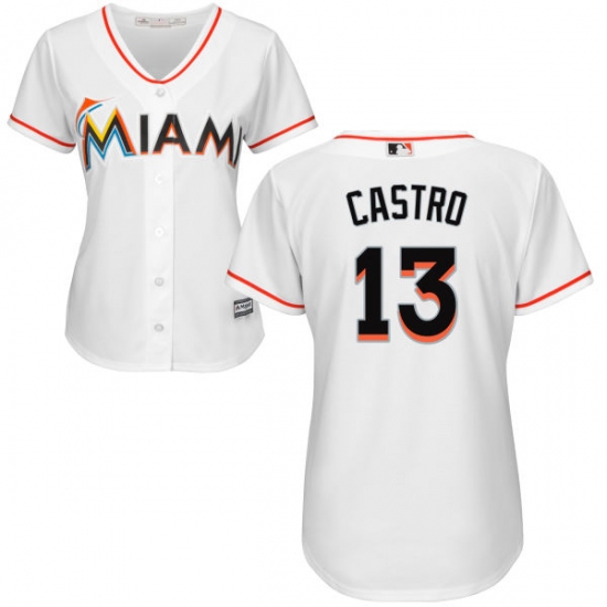 Home>MLB>Miami Marlins>Starlin Castro>Women's Majestic Miami Marlins #13 Starlin Castro Authentic White Home Cool Base MLB Jersey