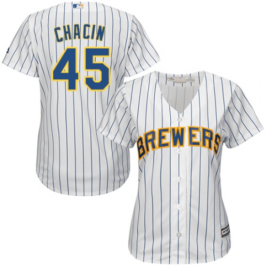 Home>MLB>Milwaukee Brewers>Jhoulys Chacin>Women's Majestic Milwaukee Brewers #45 Jhoulys Chacin Replica White Alternate Cool Base MLB Jersey
