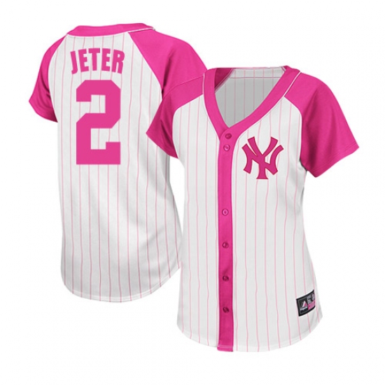 Home>MLB>New York Yankees>Derek Jeter>Women's Majestic New York Yankees #2 Derek Jeter Authentic White/Pink Splash Fashion MLB Jersey