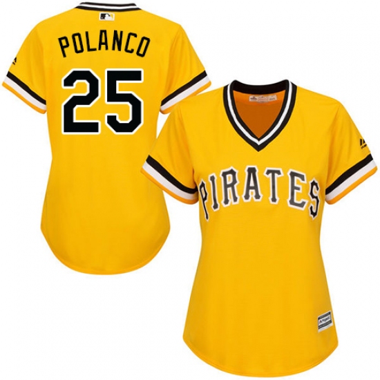Home>MLB>Pittsburgh Pirates>Gregory Polanco>Women's Majestic Pittsburgh Pirates #25 Gregory Polanco Replica Gold Alternate Cool Base MLB Jersey