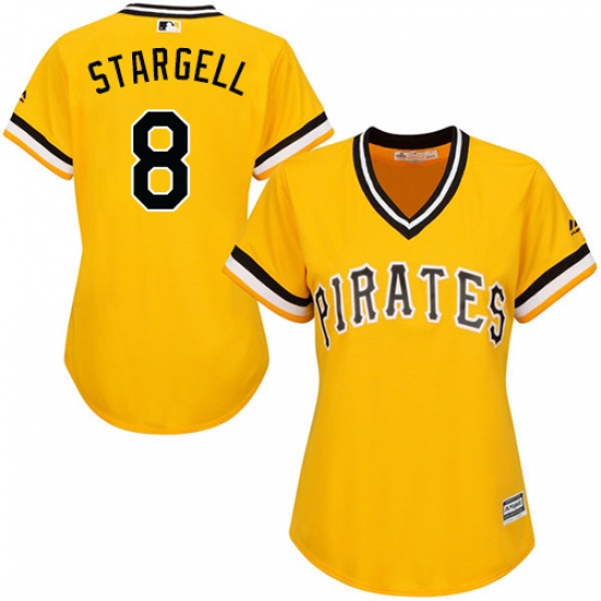 Home>MLB>Pittsburgh Pirates>Willie Stargell>Women's Majestic Pittsburgh Pirates #8 Willie Stargell Replica Gold Alternate Cool Base MLB Jersey