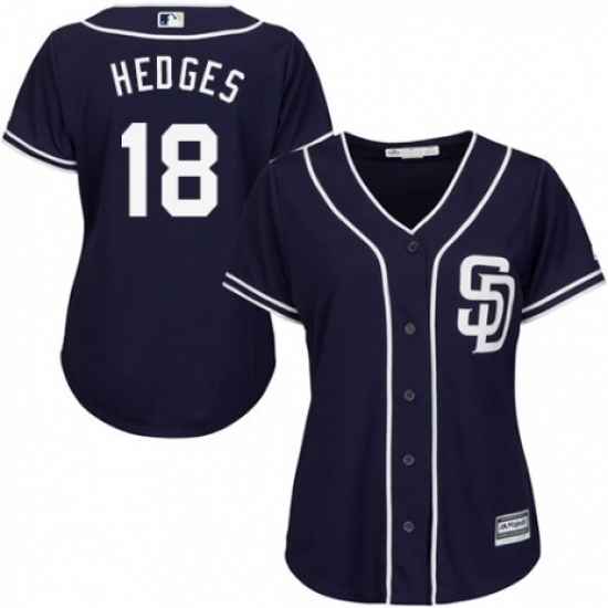 Women's Majestic San Diego Padres #18 Austin Hedges Authentic Navy Blue Alternate 1 Cool Base MLB Jersey