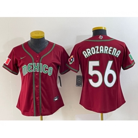 >Women's Mexico Baseball #56 Randy Arozarena 2023 Red World Classic Stitched Jersey 1