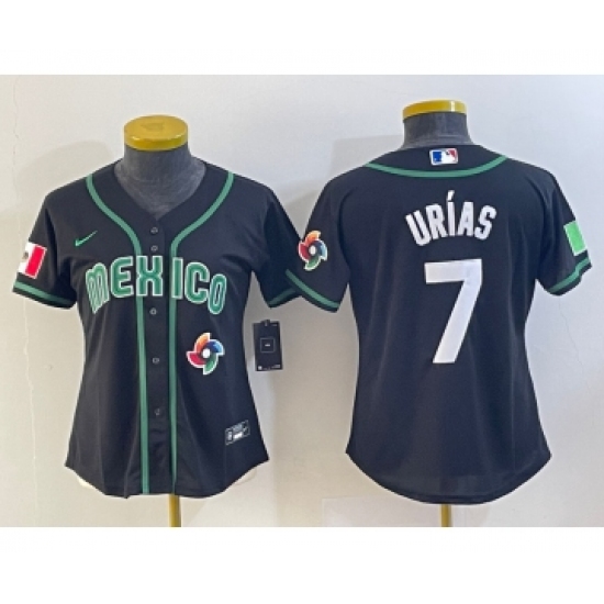 Women's Mexico Baseball #7 Julio Urias Number 2023 Black World Classic Stitched Jersey6