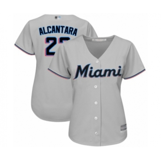 >Women's Miami Marlins #22 Sandy Alcantara Authentic Grey Road Cool Base Baseball Jersey