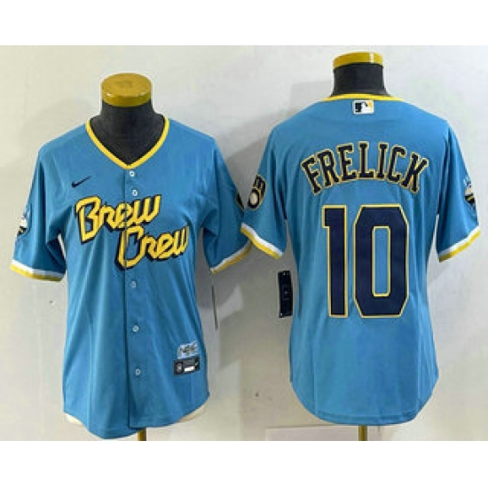 Women's Milwaukee Brewers #10 Sal Frelick Blue 2022 City Connect Cool Base Stitched Jersey