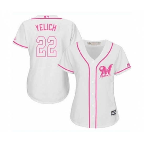 Women's Milwaukee Brewers #22 Christian Yelich Pink Fashion Stitched MLB Jersey