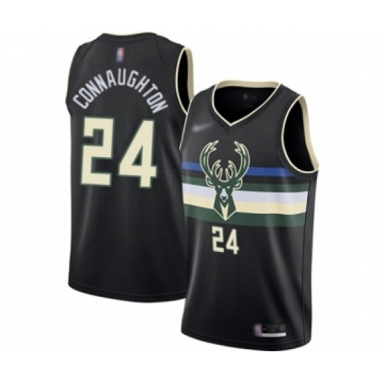 >Women's Milwaukee Bucks #24 Pat Connaughton Swingman Black Finished Basketball Jersey - Statement Edition