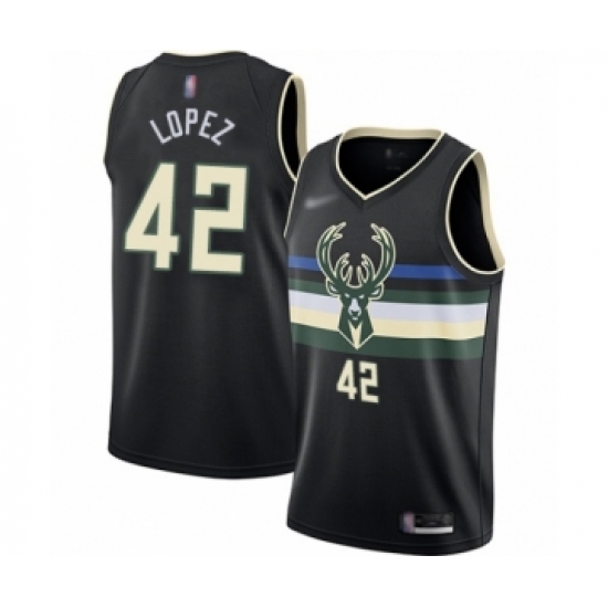 Men's Milwaukee Bucks #42 Robin Lopez Authentic Black Basketball Jersey - Statement Edition