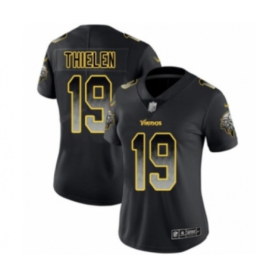 >Women's Minnesota Vikings #19 Adam Thielen Limited Black Smoke Fashion Football Jersey