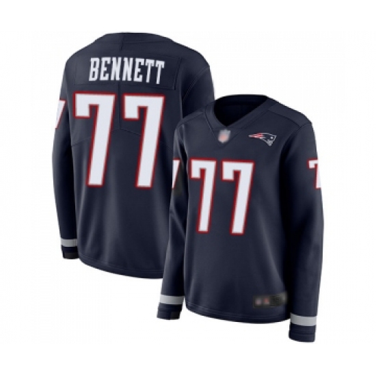 Women's New England Patriots #77 Michael Bennett Limited Navy Blue Therma Long Sleeve Football Jersey