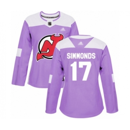 Women's New Jersey Devils #17 Wayne Simmonds Authentic Purple Fights Cancer Practice Hockey Jersey