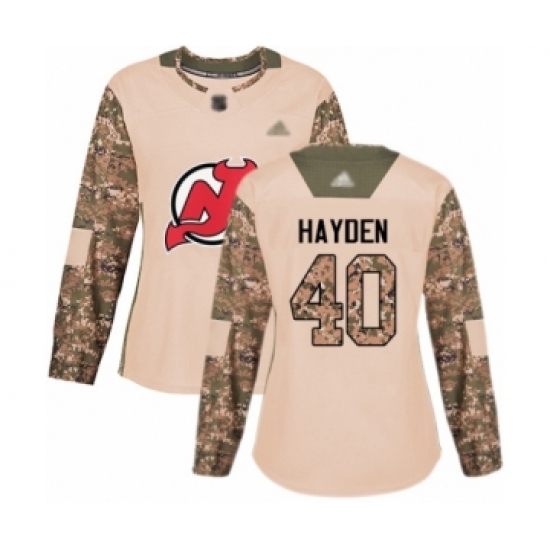 >Women's New Jersey Devils #40 John Hayden Authentic Camo Veterans Day Practice Hockey Jersey