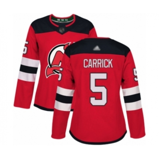 >Women's New Jersey Devils #5 Connor Carrick Authentic Red Home Hockey Jersey