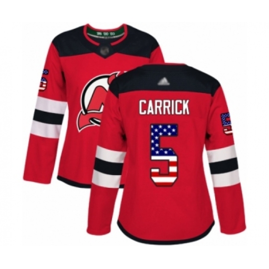 Women's New Jersey Devils #5 Connor Carrick Authentic Red USA Flag Fashion Hockey Jersey
