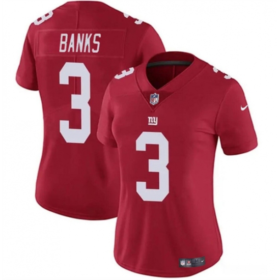 Women's New York Giants #3 Deonte Banks Red Vapor Stitched Jersey(Run Small)