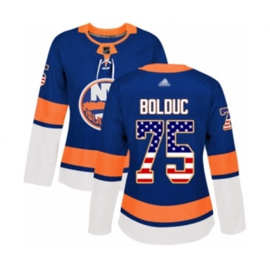 Women's New York Islanders #75 Samuel Bolduc Authentic Royal Blue USA Flag Fashion Hockey Jersey