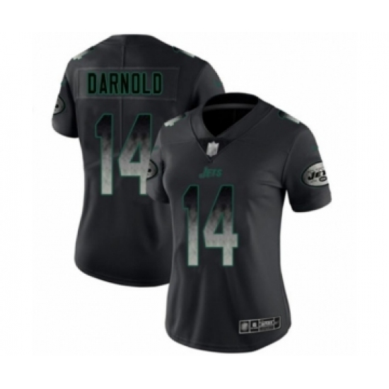 >Women's New York Jets #14 Sam Darnold Limited Black Smoke Fashion Football Jersey