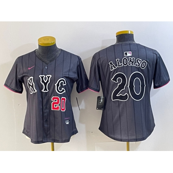 >Women's New York Mets #20 Pete Alonso Number Grey 2024 City Connect Cool Base Stitched Jerseys